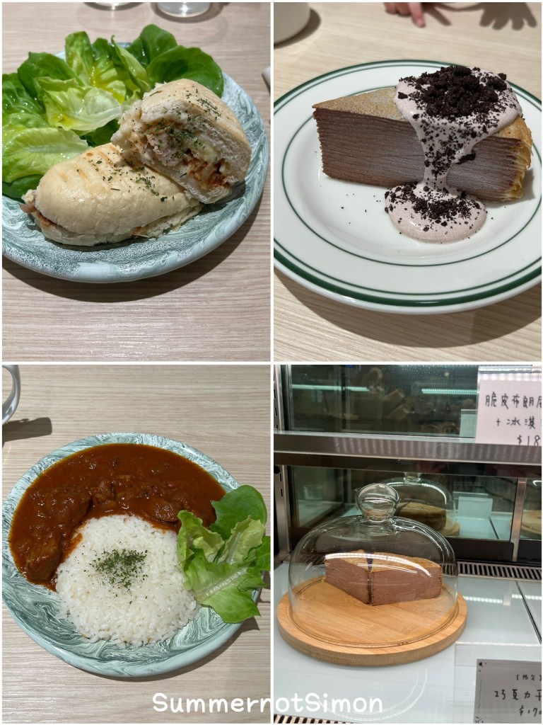 我們點一個雞肉帕里尼、一個咖哩豬肉飯、兩杯飲料、一個巧克力千層