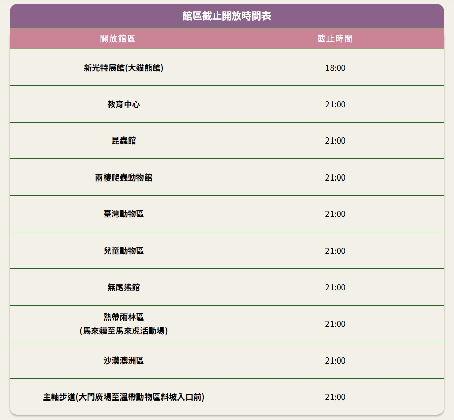 夜間加開的時間(照片取自動物園官網):