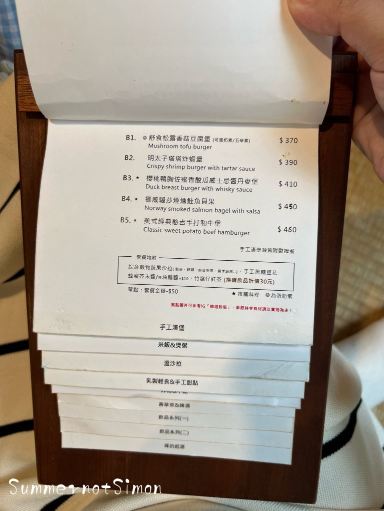 A2.紅酒無花果薯餅佐馬斯卡彭可頌(附歐姆蛋)NT$330 & 美式經典憨吉手打和牛堡NT$460 & D3明太子無骨牛小排褒粥NT$490 (每日限量) & E3油醋鴨胸溫莎拉NT$350
