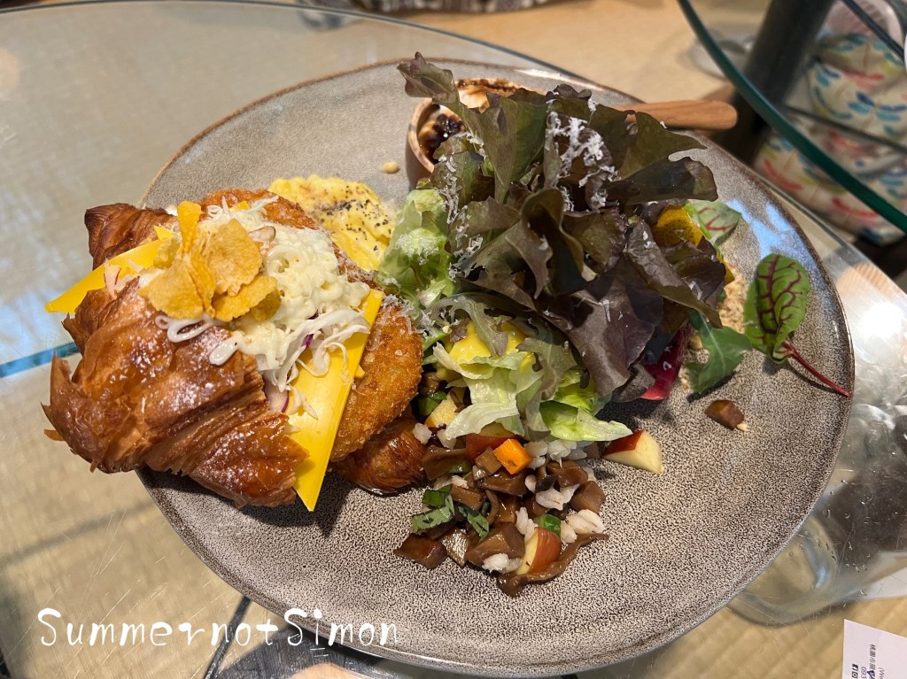 可頌搭配薯餅和起士 感覺很簡單 但吃起來很好吃