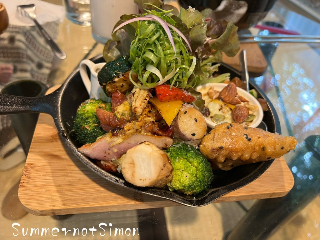 各種烤食蔬和堅果烘蛋以及油醋醬生菜 不同口感吃起來不會很單調